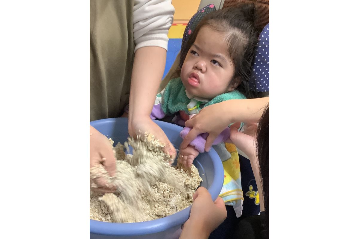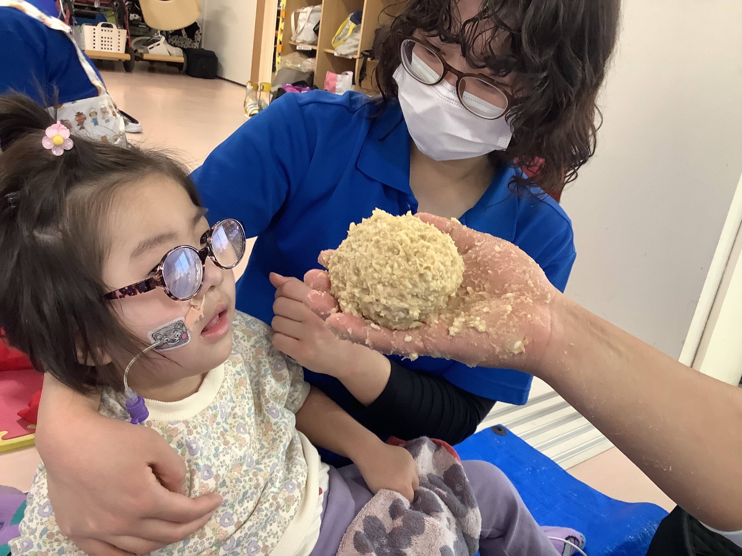 ふわっと広がる麹の香り。手のひらに伝わる大豆のやさしいあたたかさ。はじめての感触に少し戸惑いながらも、「なんだろう?」とじっと見つめたり、勇気を出してそっと触れてみたり・・・